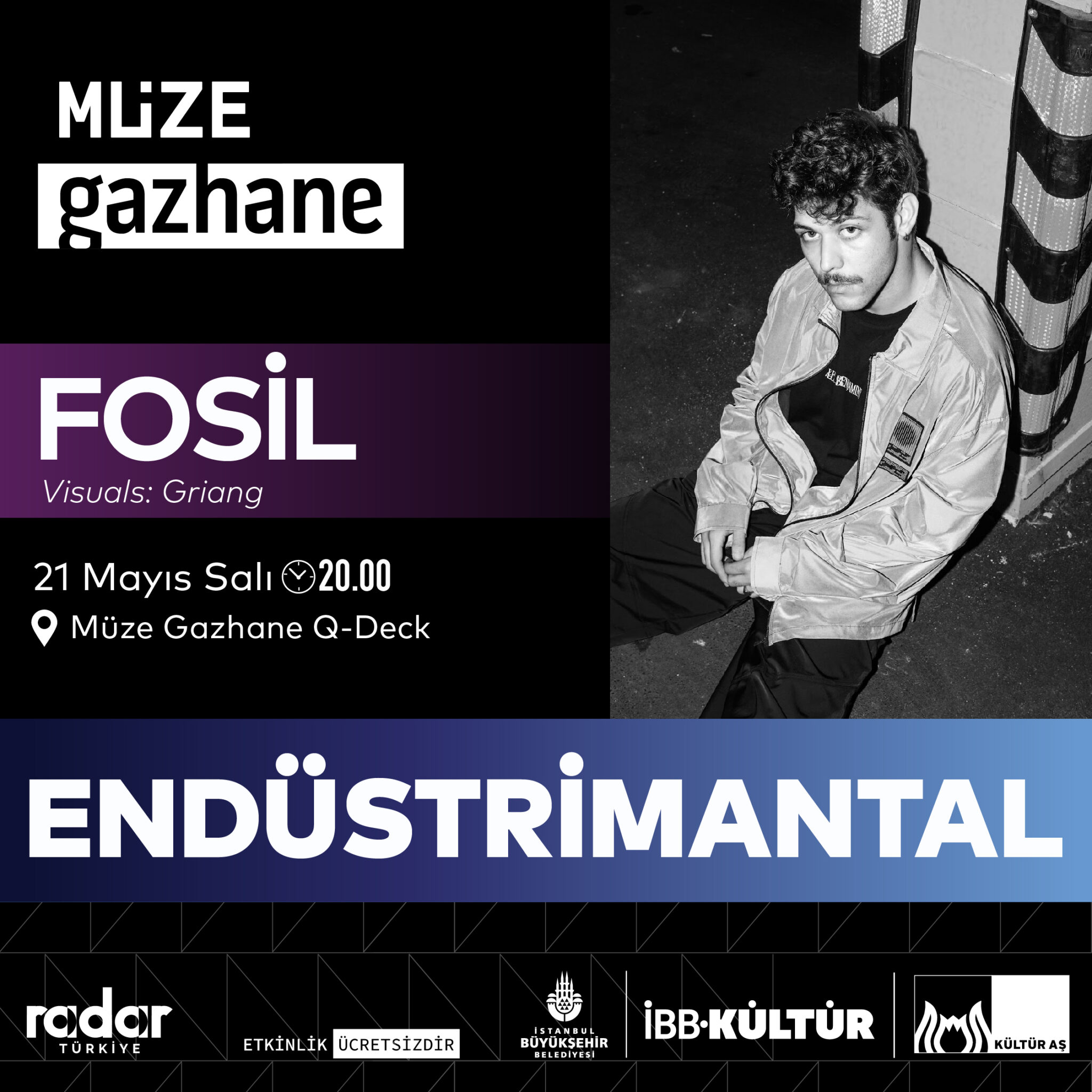 Müze Gazhane’nin 130 yıllık endüstriyel hafızasını müziğin sınırsız dünyasıyla birleştiren Endüstrimantal konser serisi kapsamında Fosil sahnede olacak.